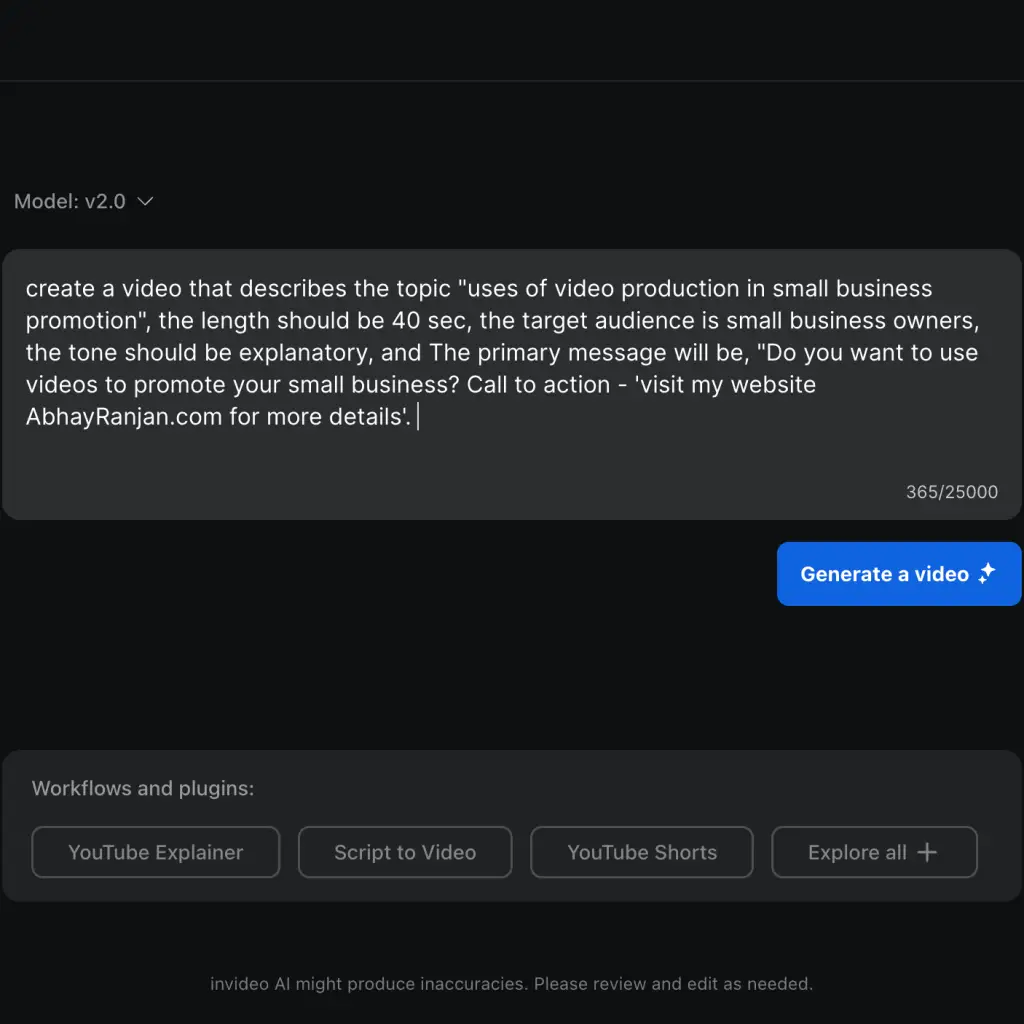 - Relax as AI Works Its Magic: Sit back as Invideo AI processes your prompt and diligently crafts your video within minutes.